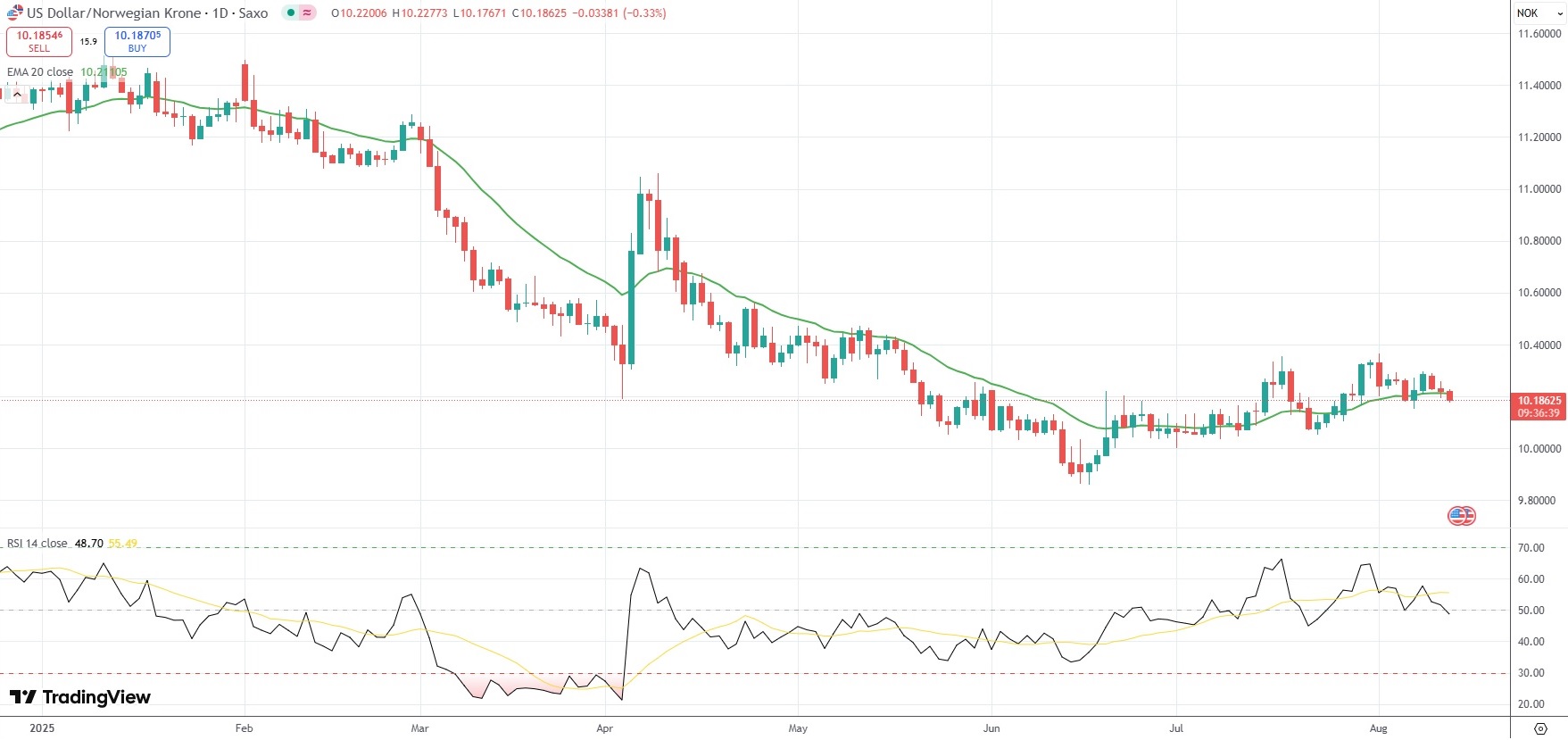 Meanwhile, Norges Bank is expected to keep its key policy rate on hold at 4.25% at its August 14th meeting.