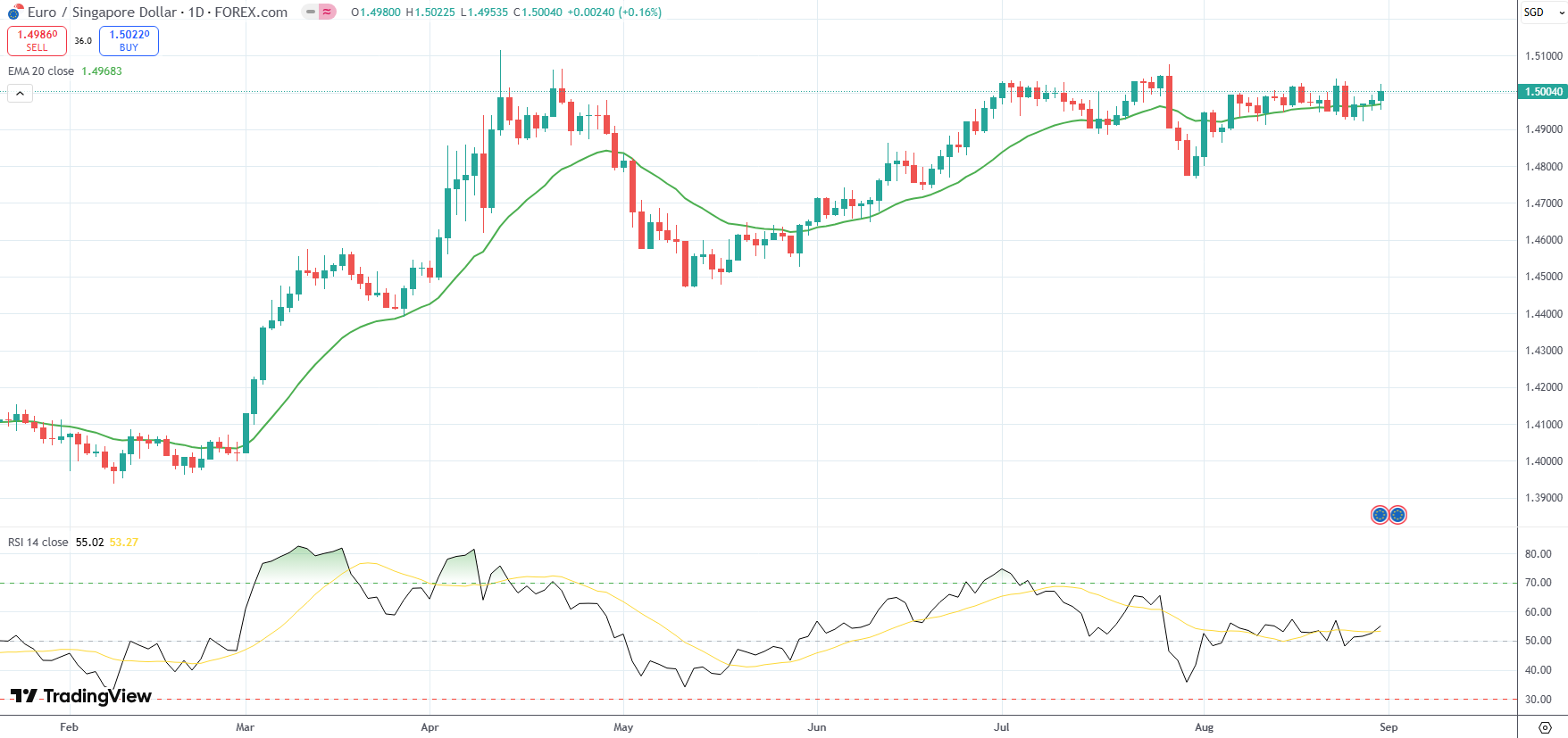 The EUR/SGD currency pair settled below Friday’s high of 1.5022, its strongest level since August 22nd, as market players digested the latest inflation data prints out of Euro Area’s largest economies.