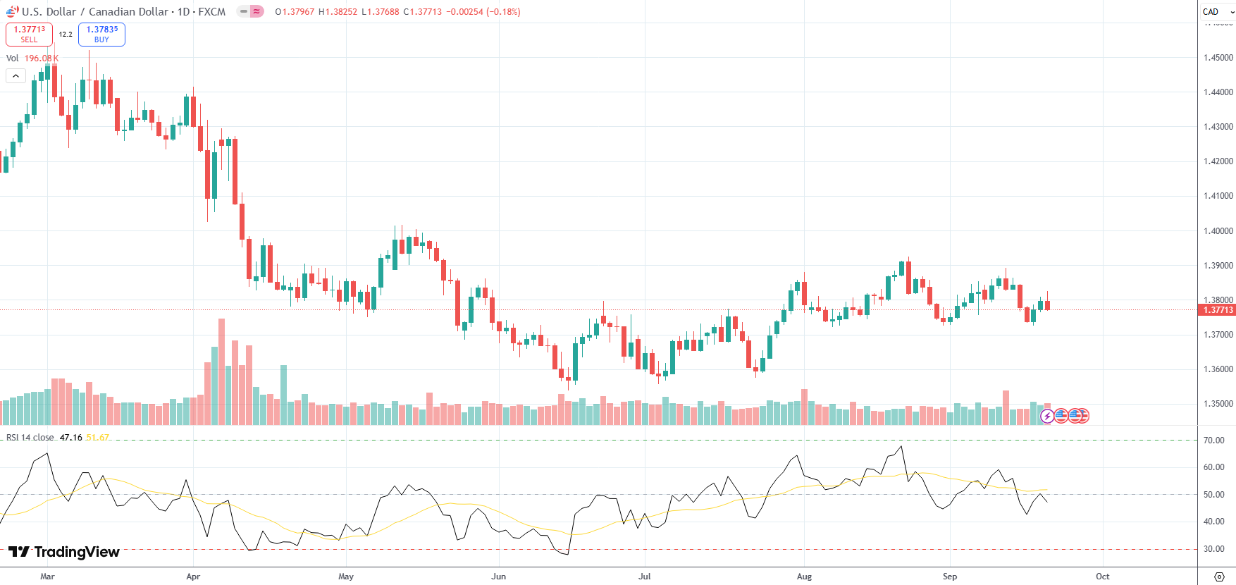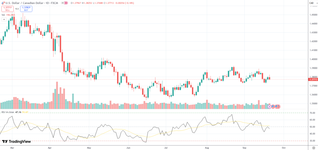 The USD/CAD currency pair settled above recent low of 1.3726, its weakest level since August 29th, in the wake of the Federal Reserve’s and the Bank of Canada’s policy decisions.