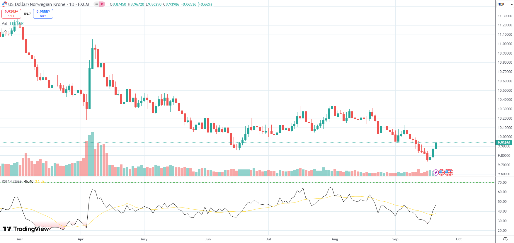 The USD/NOK currency pair settled above recent low of 9.7330, its weakest level since December 15th 2022, in the wake of the Federal Reserve’s and Norges Bank’s policy decisions.