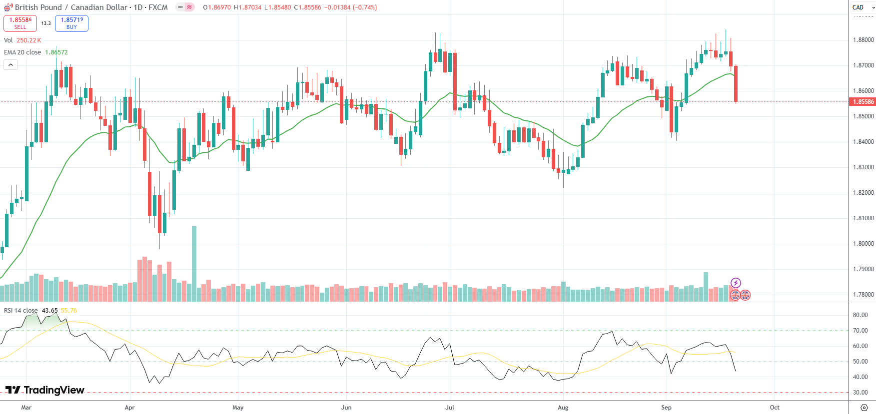 The GBP/CAD currency pair settled below recent high of 1.8842, its strongest level since June 24th 2016, in the wake of the Bank of England’s and the Bank of Canada’s policy decisions.