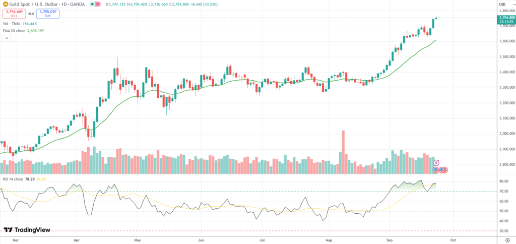 Spot Gold was last up 0.23% on the day to trade at $3,754.80 per troy ounce.