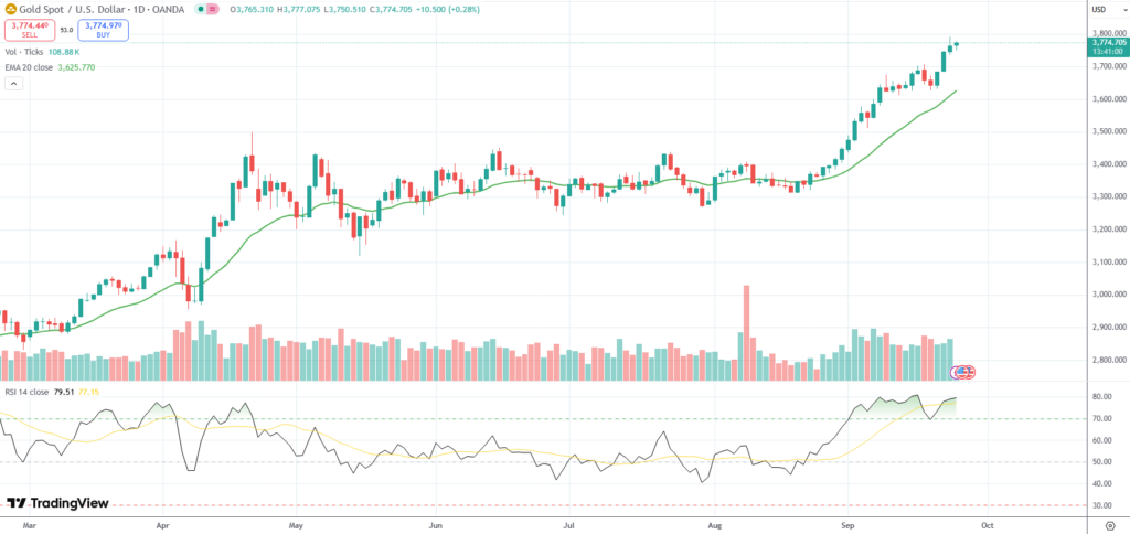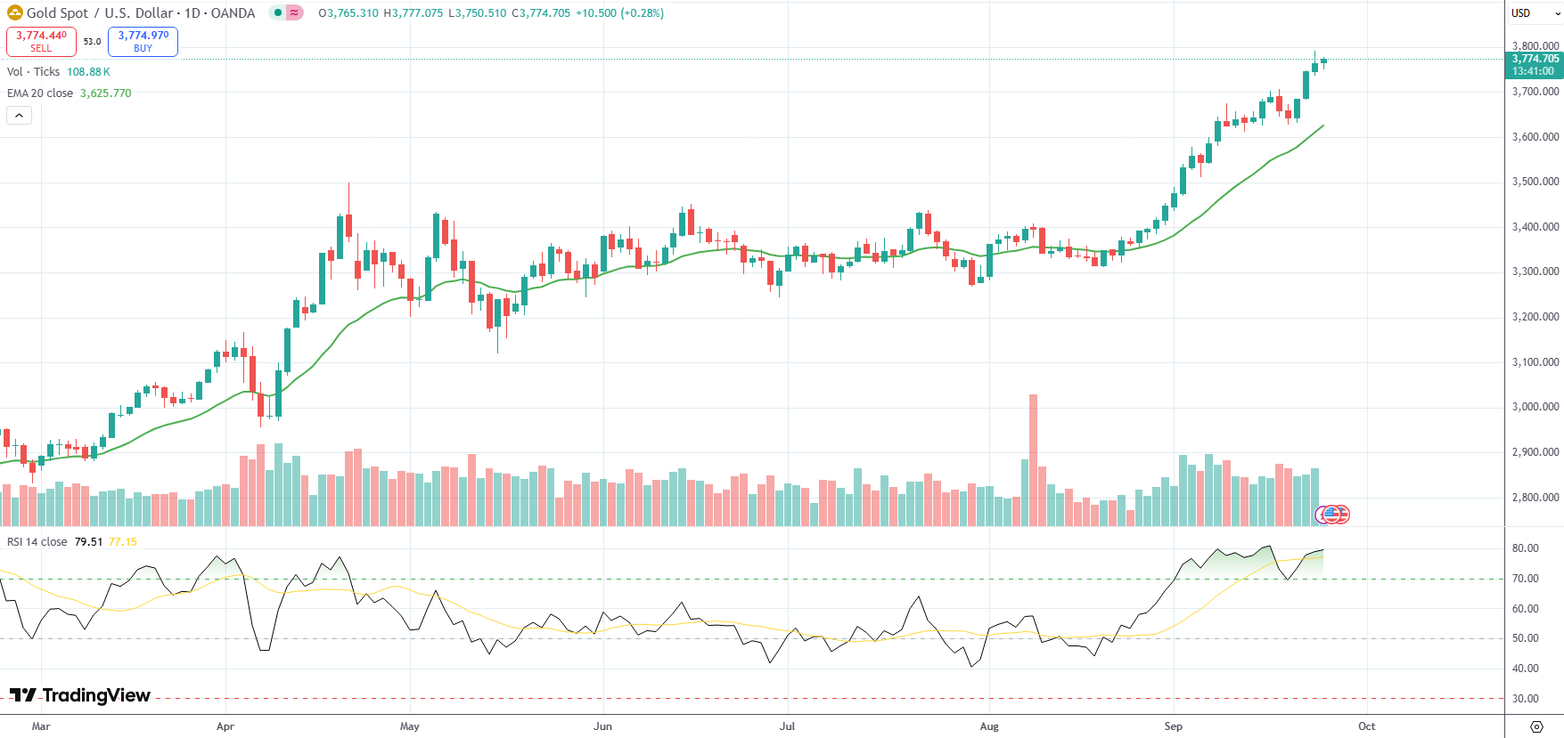 Spot Gold was last up 0.28% on the day to trade at $3,774.70 per troy ounce.
