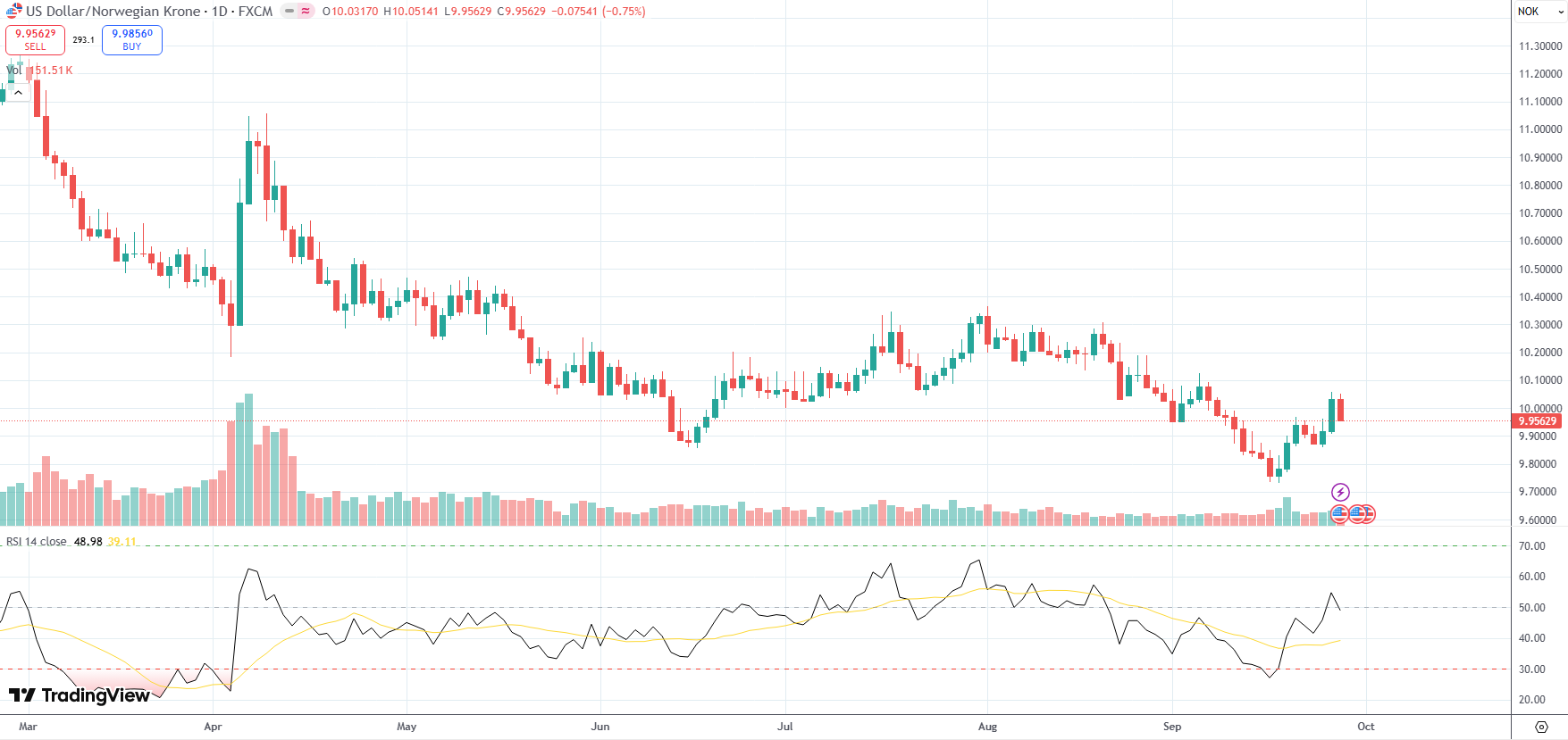 The USD/NOK currency pair settled below recent high of 10.0577, its strongest level since September 5th, after US PCE inflation data met expectations and reinforced bets that the Federal Reserve could ease policy further this year.