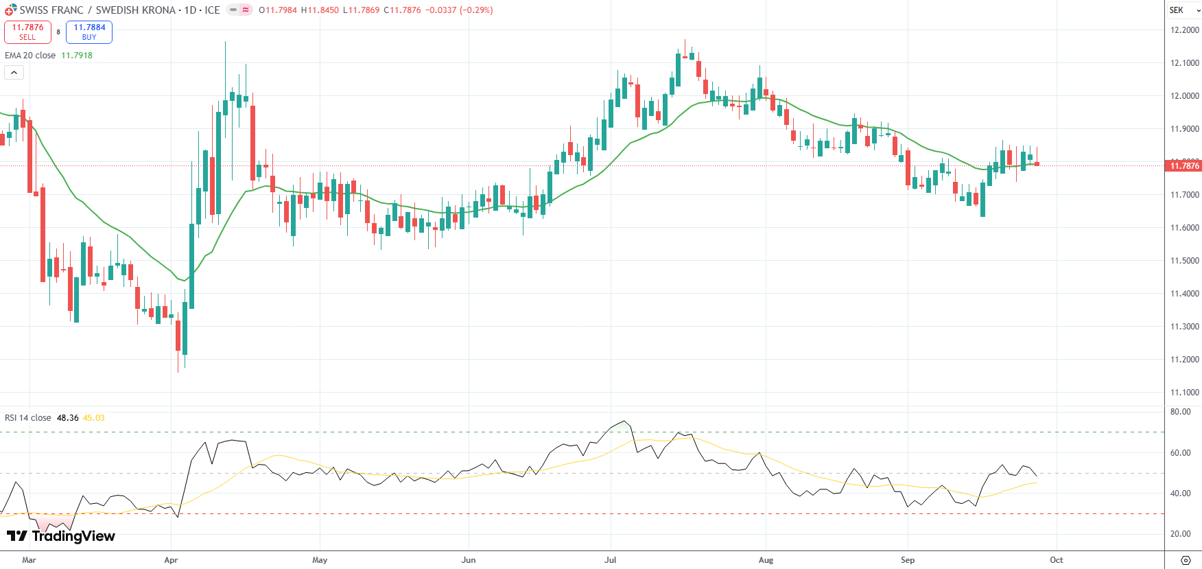 The CHF/SEK currency pair settled below recent high of 11.8649, its strongest level since August 28th, in the wake of the Swiss National Bank’s policy decision.