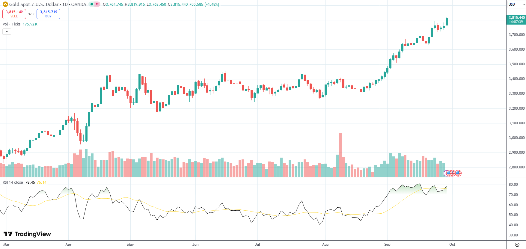 Spot Gold was last up 1.48% on the day to trade at $3,815.44 per troy ounce.