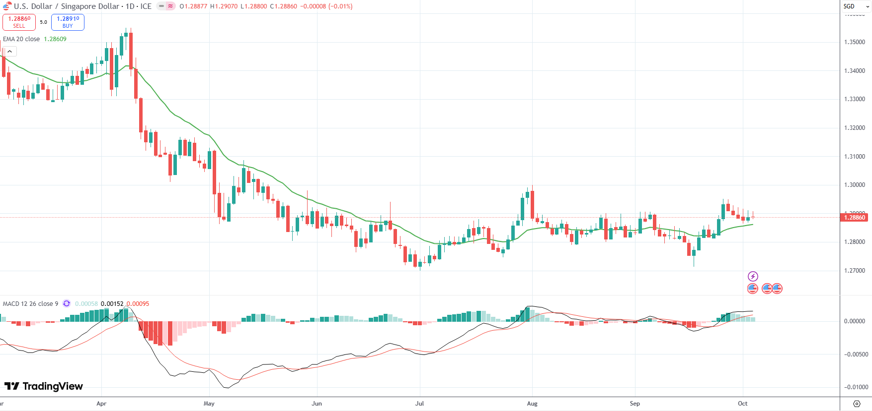 The USD/SGD currency pair settled below recent high of 1.2951, its strongest level since August 1st, after data showed US services sector activity had unexpectedly stalled in September.