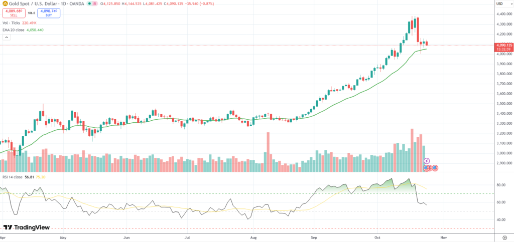 Spot Gold was down 0.87% on the day to trade at $4,090.13 per troy ounce.