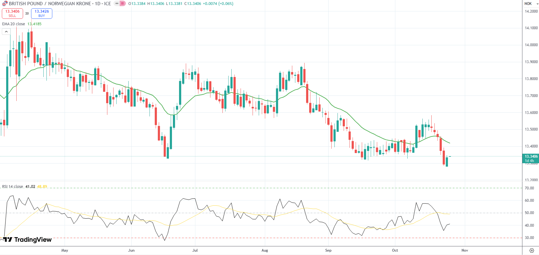 The GBP/NOK currency pair settled above Friday’s low of 13.2817, its weakest level since February 22nd 2024, after a surprise surge in UK retail sales – a sign that consumers are still spending despite elevated inflation.