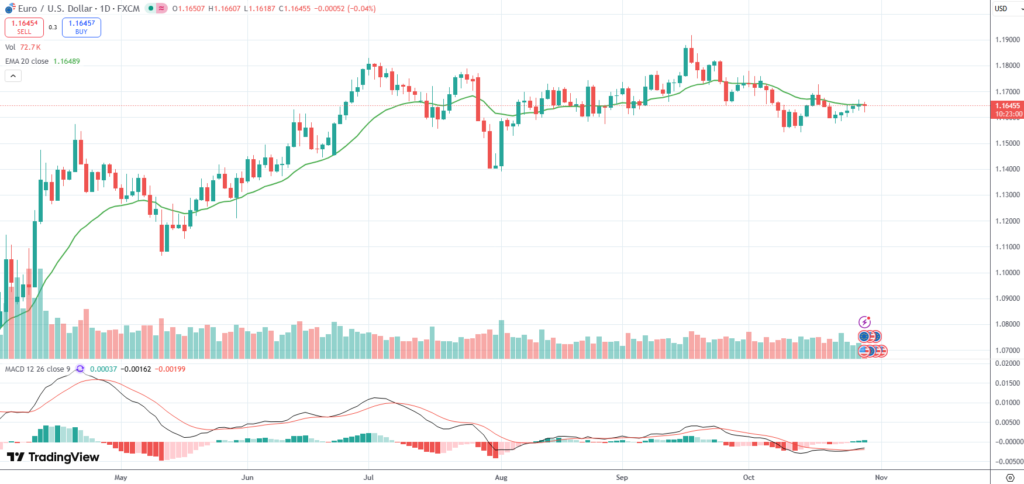 The EUR/USD currency pair was last down 0.04% on the day to trade at 1.1645.