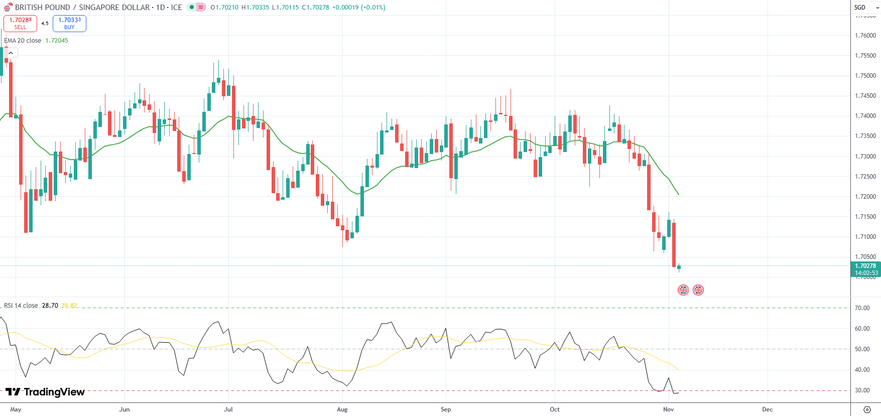 The GBP/SGD currency pair was last little changed on the day to trade at 1.7027.