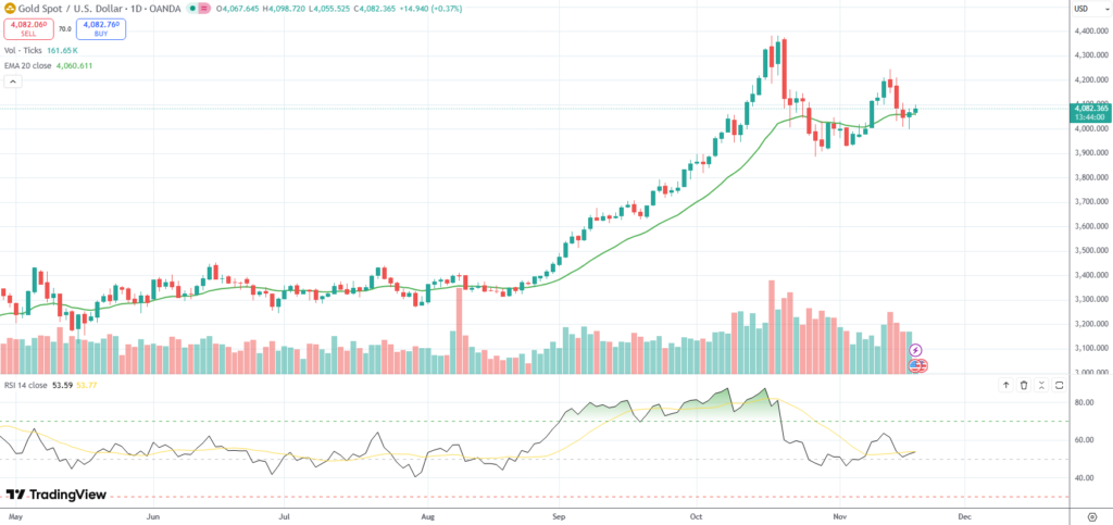 Spot Gold was last up 0.37% on the day to trade at $4,082.36 per troy ounce.
