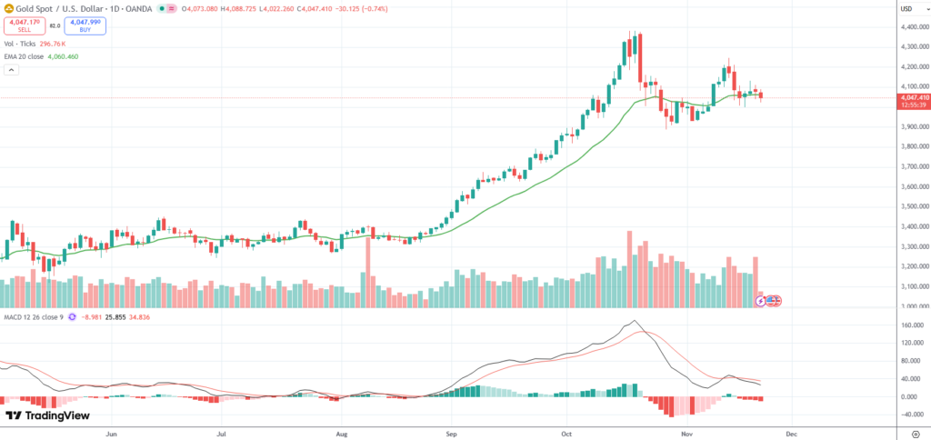 Spot Gold was last down 0.74% on the day to trade at $4,047.41 per troy ounce.