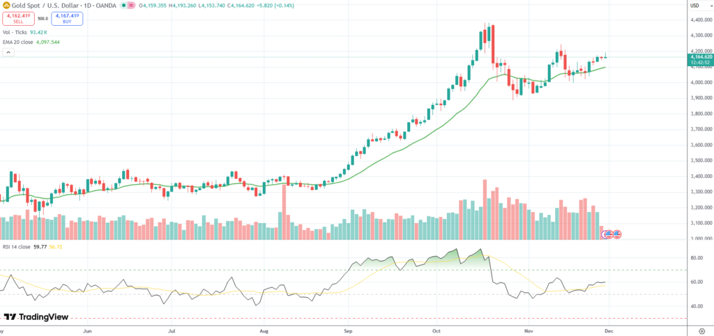 Spot Gold extended gains to a fresh two-week high of $4,193.26/oz. on Friday and was on course for its fourth consecutive monthly advance on growing expectations of an interest rate cut by the Federal Reserve next month.