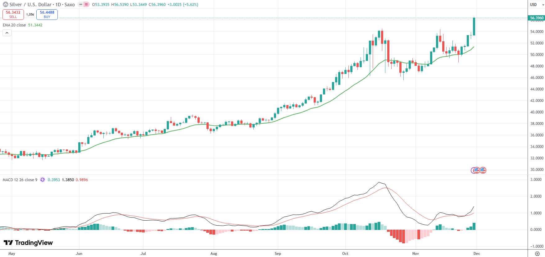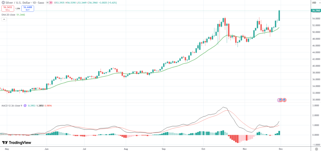 On the supply front, China’s silver exports rose to an all-time high of over 660 tonnes in October, data showed, while China’s inventories have decreased to their lowest level in a decade.