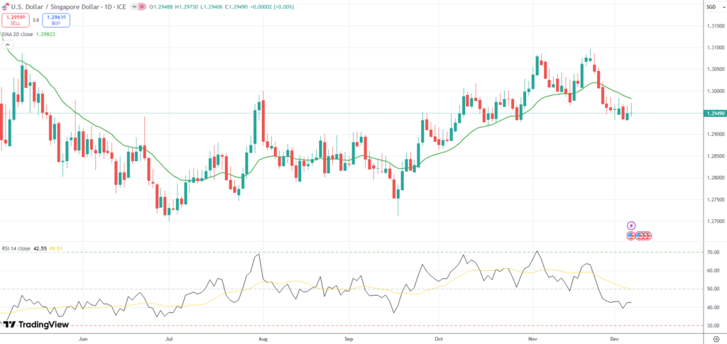 The USD/SGD currency pair settled above recent low of 1.2933, its weakest level since October 29th, after the delayed September PCE inflation data reinforced bets on another interest rate cut by the Federal Reserve next week.