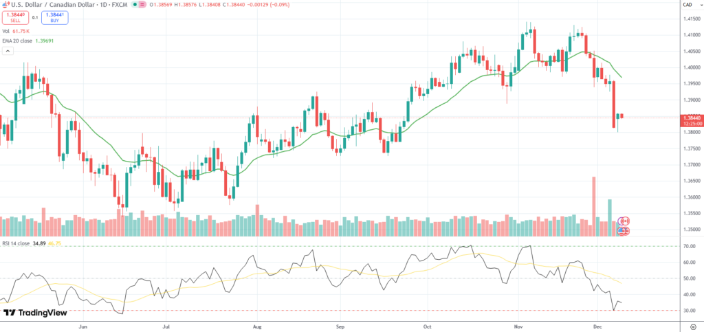 The USD/CAD currency pair was hovering above an 11-week low of 1.3800 on Tuesday ahead of the outcome of the Federal Reserve’s and the Bank of Canada’s policy meetings.