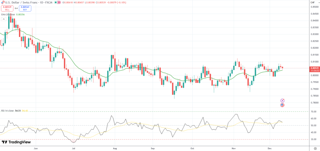 The USD/CHF currency pair was last down 0.10% on the day to trade at 0.8054.