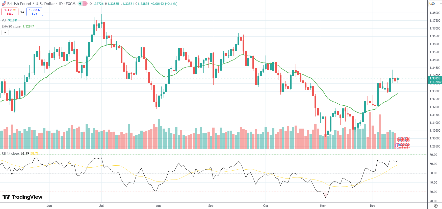 The GBP/USD currency pair was last up 0.14% on the day to trade at 1.3383.