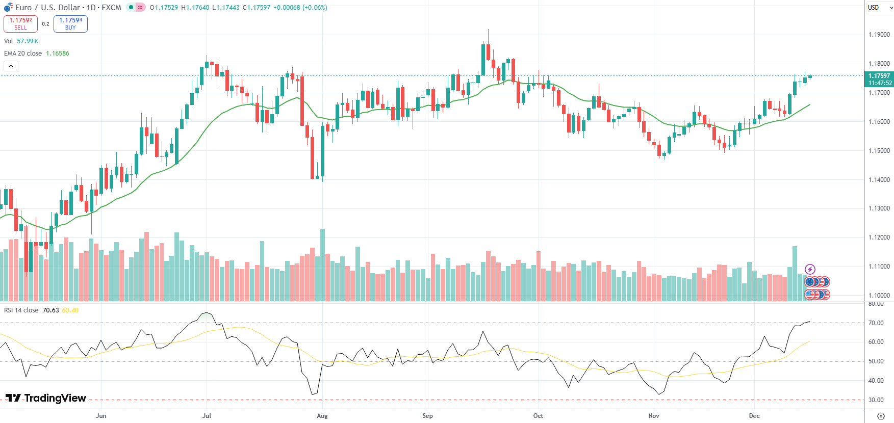 The EUR/USD currency pair held close to an 11-week high of 1.1769 on Tuesday ahead of the outcome of the European Central Bank’s policy meeting, while investors braced for the US Non-Farm Payrolls data for more insight into macroeconomic conditions and the Fed’s future interest rate path.