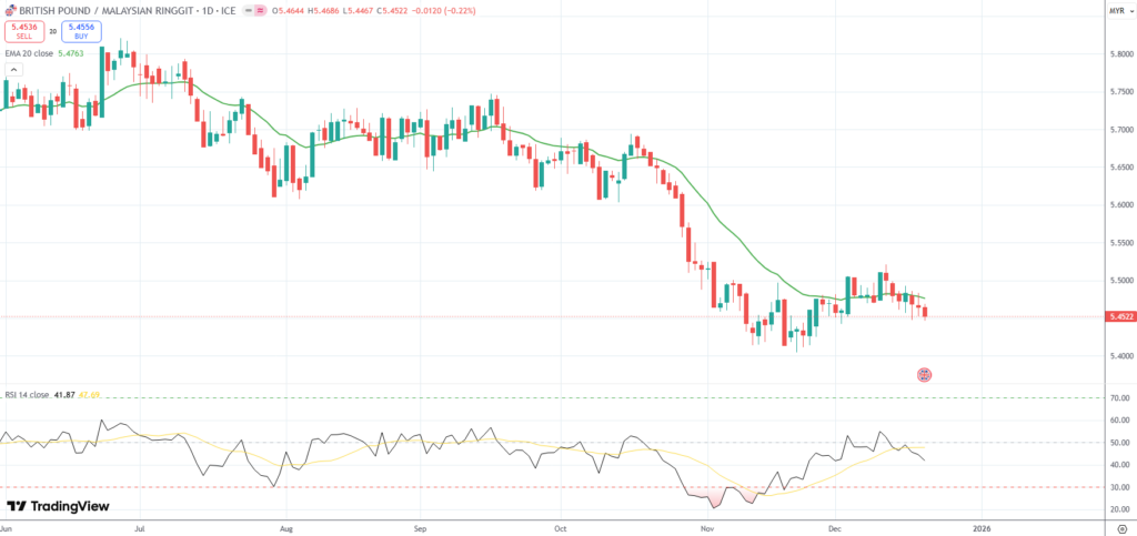 The GBP/MYR currency pair settled below recent high of 5.5208, its strongest level since November 4th, in the wake of the Bank of England’s policy decision.