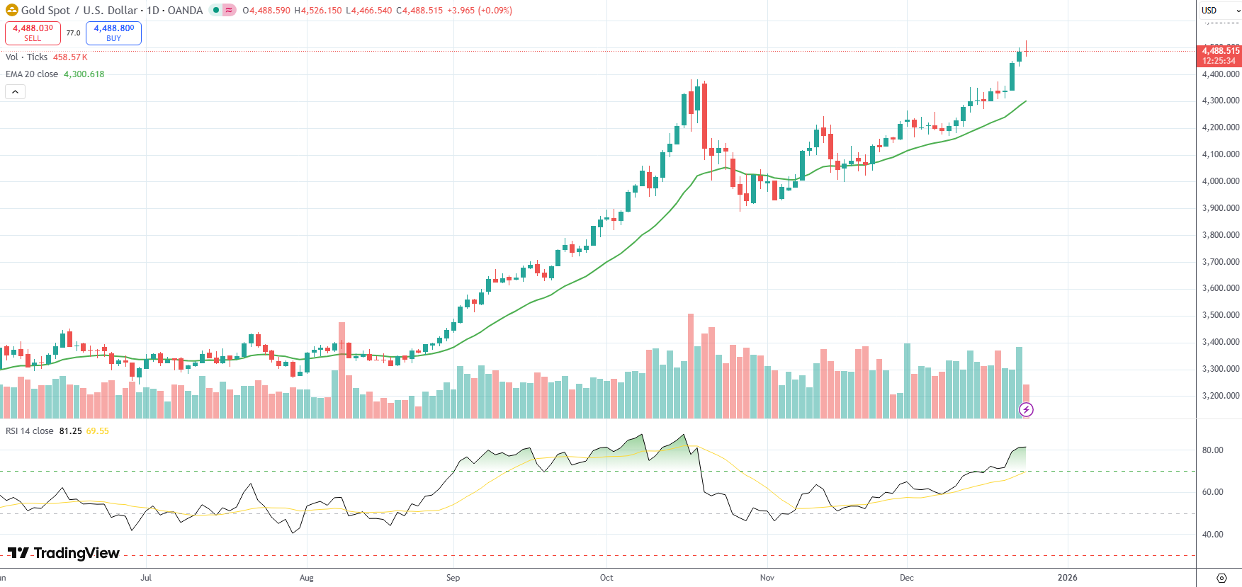Year-to-date, the yellow metal has surged 71.04%, set to register its best annual performance since 1979.