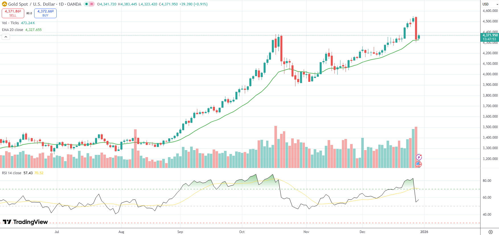 Yesterday Gold retreated 4.4%, pulling back from last week’s all-time high of $4,549.71/oz. amid a substantial year-end profit booking.