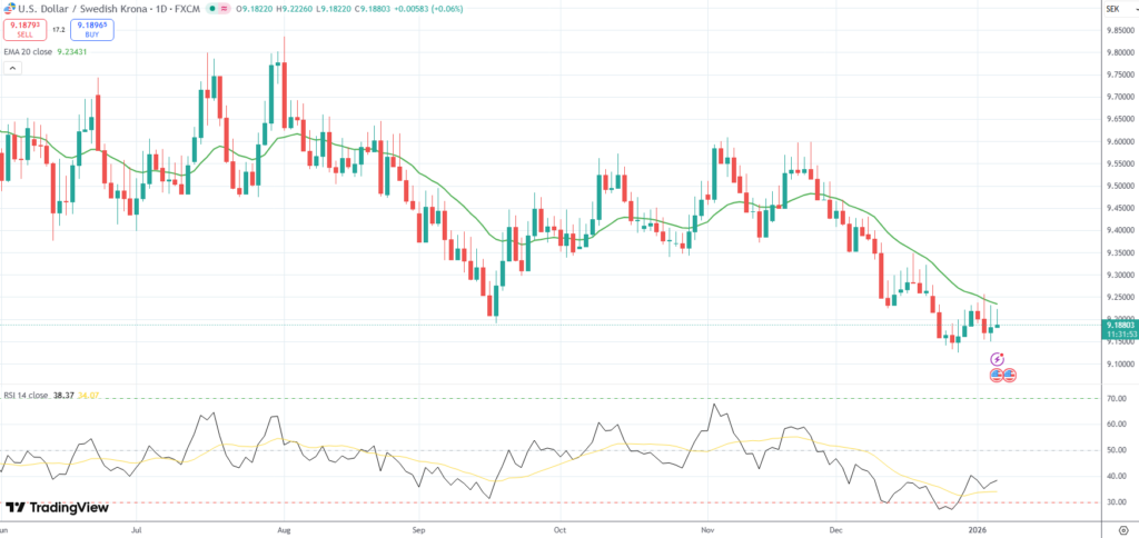 The USD/SEK currency pair bounced from a one-week low of 9.1500 on Wednesday, as investors braced for the release of essential US job market data, which may provide fresh clues on the health of the economy and the Fed’s monetary policy path.