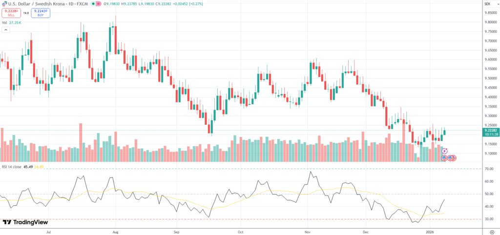 The USD/SEK currency pair was holding near recent high of 9.2564, its strongest level since December 22nd, as investors braced for the key US Non-Farm Payrolls report, which may provide fresh clues on the Fed’s monetary policy path.