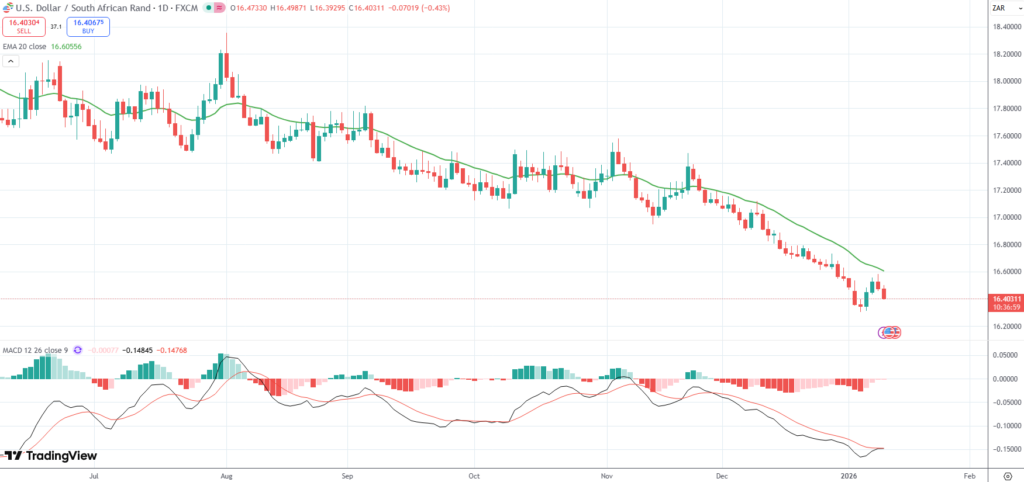 The USD/ZAR currency pair lost ground at the start of the new week, as scrutiny of Fed Chair Jerome Powell and renewed political pressure on the central bank have unsettled confidence in the Federal Reserve’s independence.