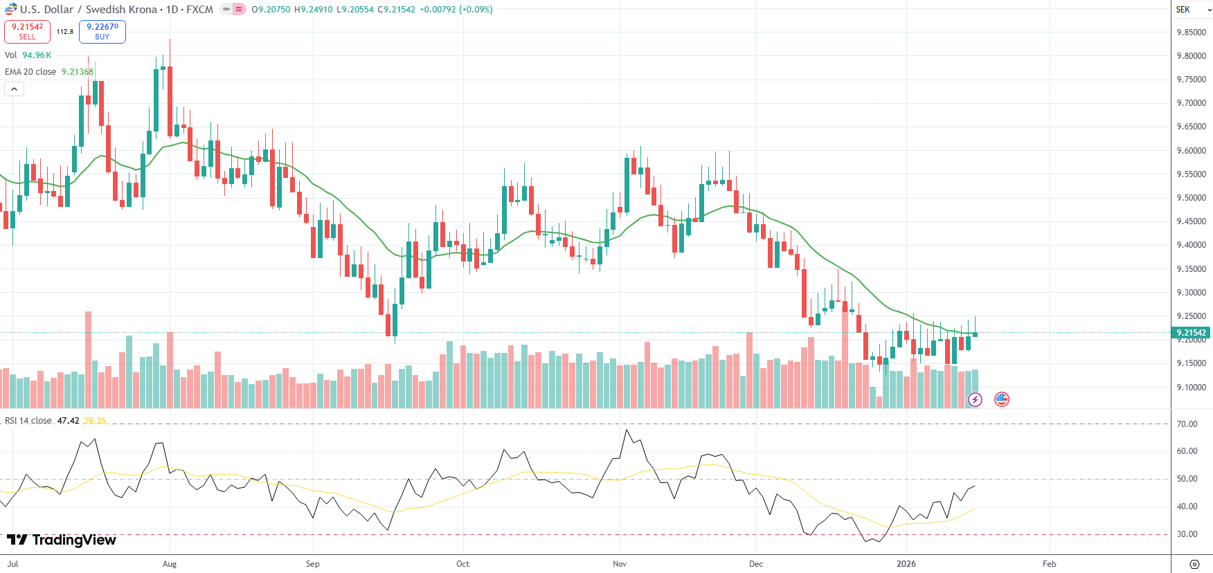 The USD/SEK currency pair settled below Friday’s high of 9.2491, its strongest level since January 5th, as the latest US macro data seemed to have curbed expectations for imminent interest rate cuts by the Federal Reserve.