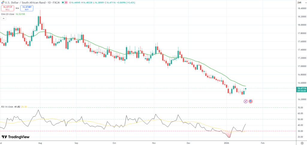 The USD/ZAR currency pair gained on Monday, with the Rand retreating from recent highs, as US President Donald Trump’s new tariff threats over Greenland weighed on broader risk sentiment.