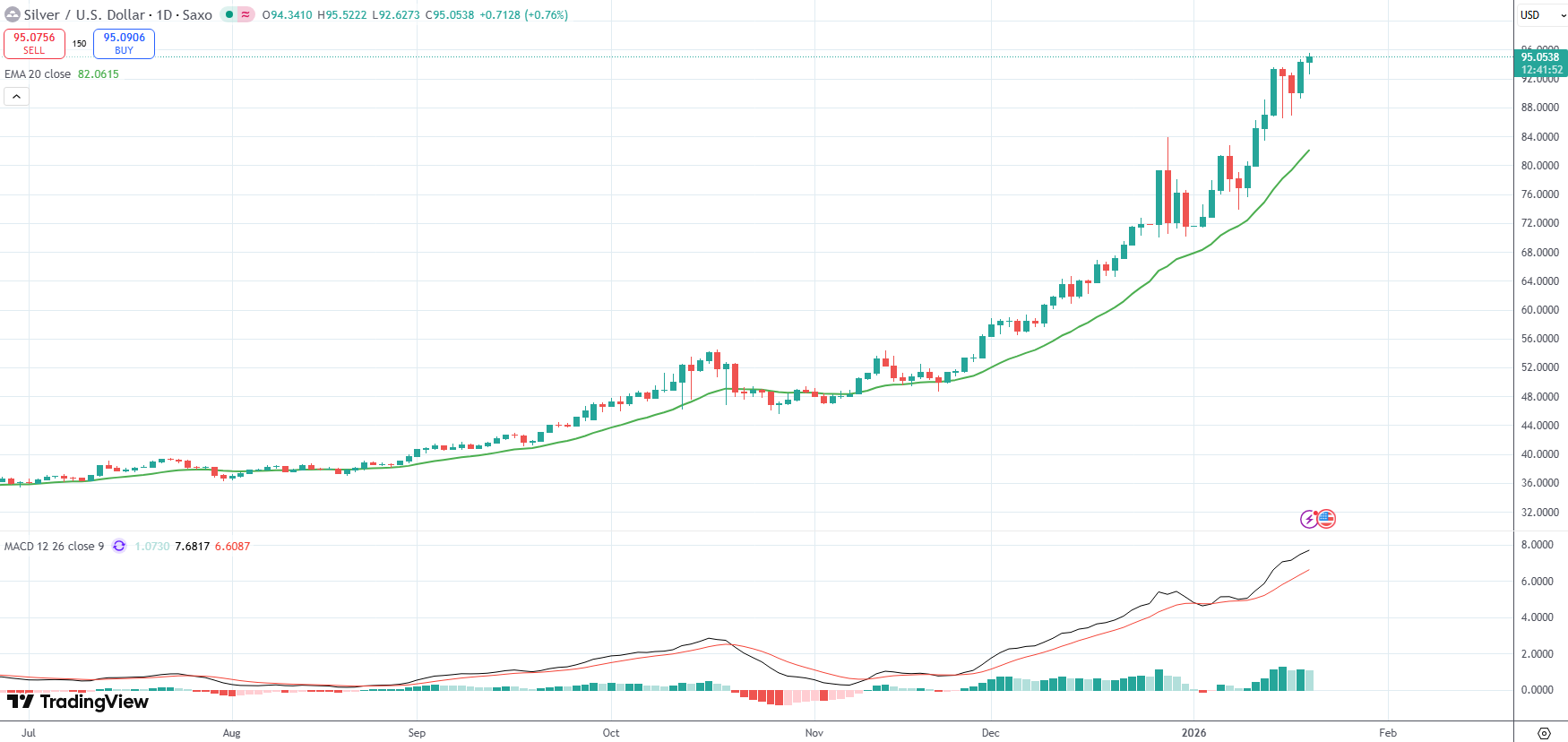 Spot Silver registered a fresh all-time high above $95/oz. on Tuesday, as US President Donald Trump’s tariff threats over Greenland sparked trade war concerns and fueled safe-haven metals demand.