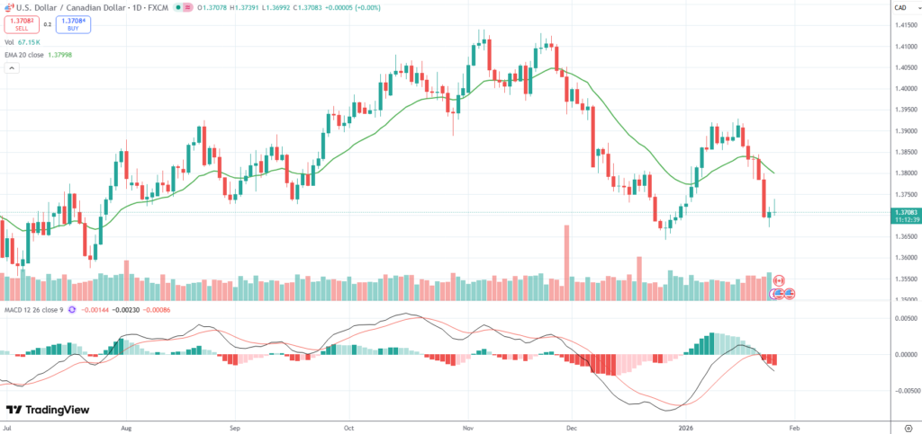 The USD/CAD currency pair rebounded from a 1-month low of 1.3671 on Tuesday ahead of the outcome of the Federal Reserve’s and the Bank of Canada’s policy meetings.