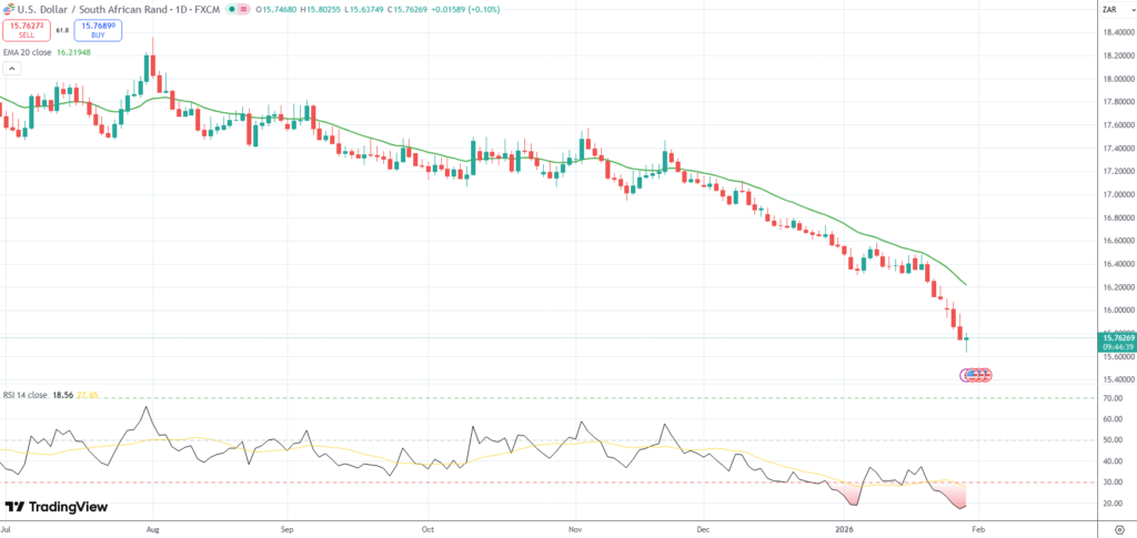Gold extended its rally to a new record high above $5,550/oz. amid continued US Dollar weakness, persistent geopolitical tensions and broader economic uncertainty. South Africa is a major producer and exporter of the yellow metal.