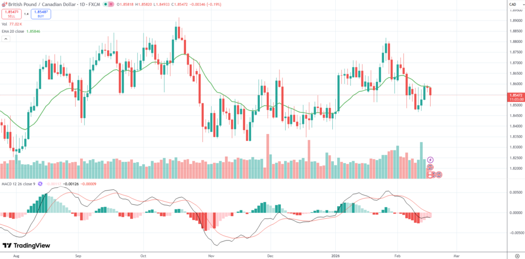The GBP/CAD currency pair was last down 0.19% on the day to trade at 1.8547.