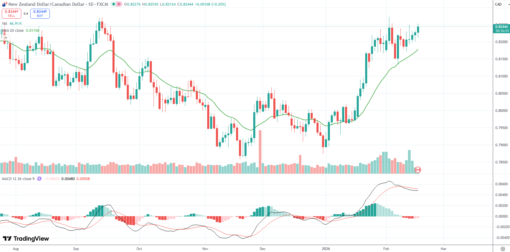 The NZD/CAD currency pair was last up 0.20% on the day to trade at 0.8244.
