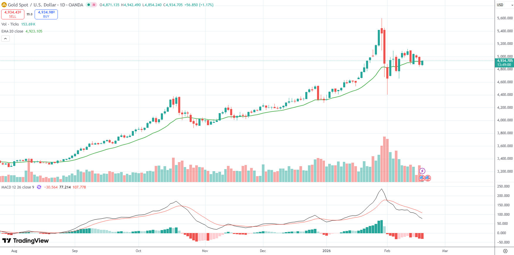 Spot Gold rebounded from a 1-week low of $4,842.60/oz. on Wednesday, as investors awaited the minutes from the Federal Reserve’s January meeting, which may provide fresh clues over monetary policy trajectory.