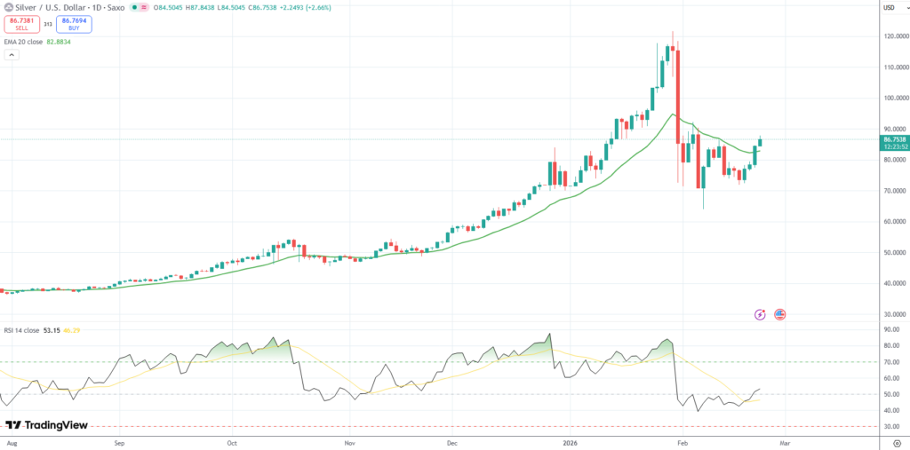 Spot Silver rose to a fresh 2 1/2-week high above $87.80/oz. on Monday, as uncertainty stemming from the US Supreme Court’s decision to strike down US President Donald Trump’s sweeping tariffs prompted investors to flock to safe-haven assets.