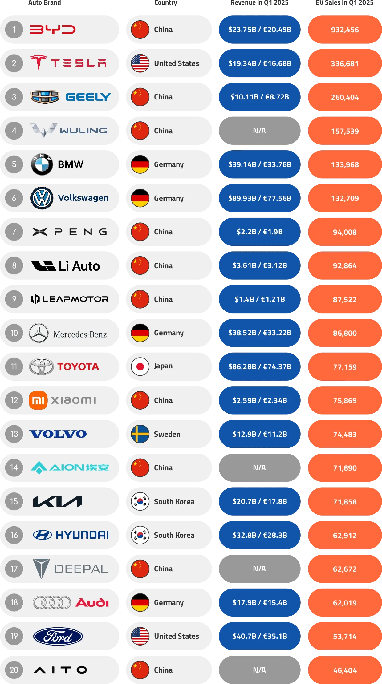 As one of the Volkswagen Group’s defining strengths, its multibrand strategy continues to pay off in 2025, with four models – the Škoda Elroq, VW ID.4, VW ID.3, and Škoda Enyaq – all ranking among Europe’s top ten best-selling EVs. The group’s diverse portfolio spans everything from compact city cars to mid-size SUVs, enabling it to target multiple market segments while capitalising on strong brand recognition and an extensive dealership network across the continent.