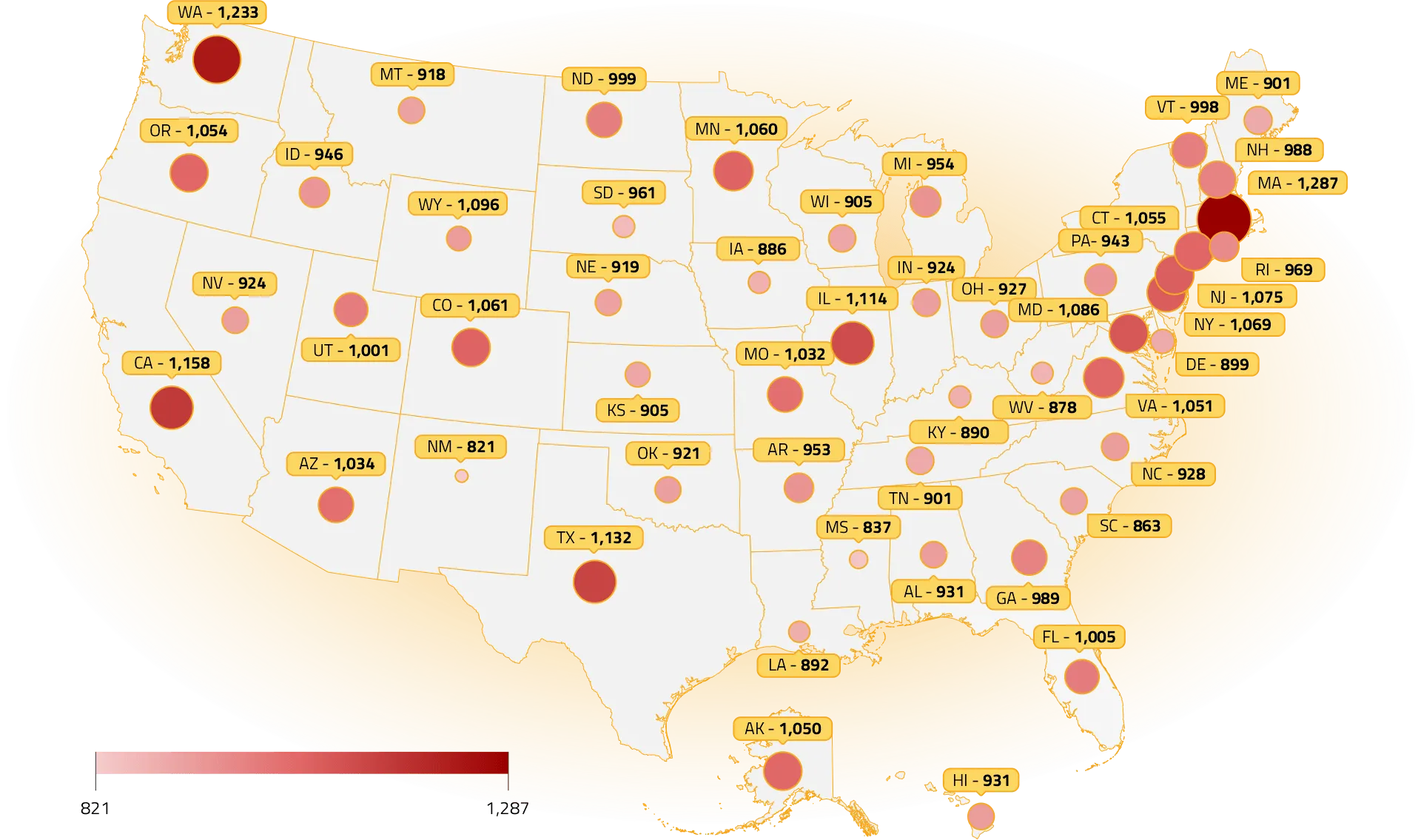 In Boston, Massachusetts, the average monthly salary can buy more than 1,287 cups of Starbucks Americano. Olympia, Washington, follows with 1,233 cups, while Sacramento, California, rounds out the top three with approximately 1,158 cups. These figures highlight the strongest coffee-purchasing power among US state capitals when it comes to affording a daily Starbucks Americano.