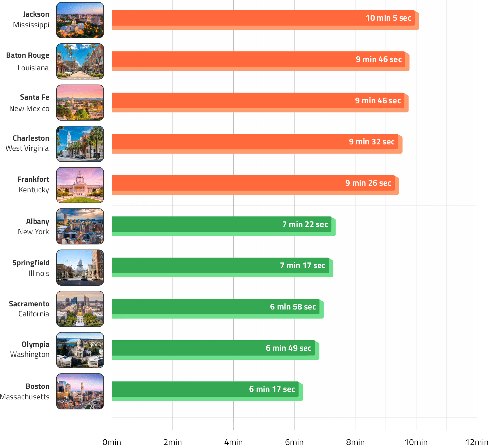 - While the national average time to afford a Starbucks Caffè Latte is 9 minutes and 44 seconds, only 26 of 51 capitals fall below this benchmark, revealing that for most Americans, coffee affordability remains tied more to their city’s wage structure than to menu prices.