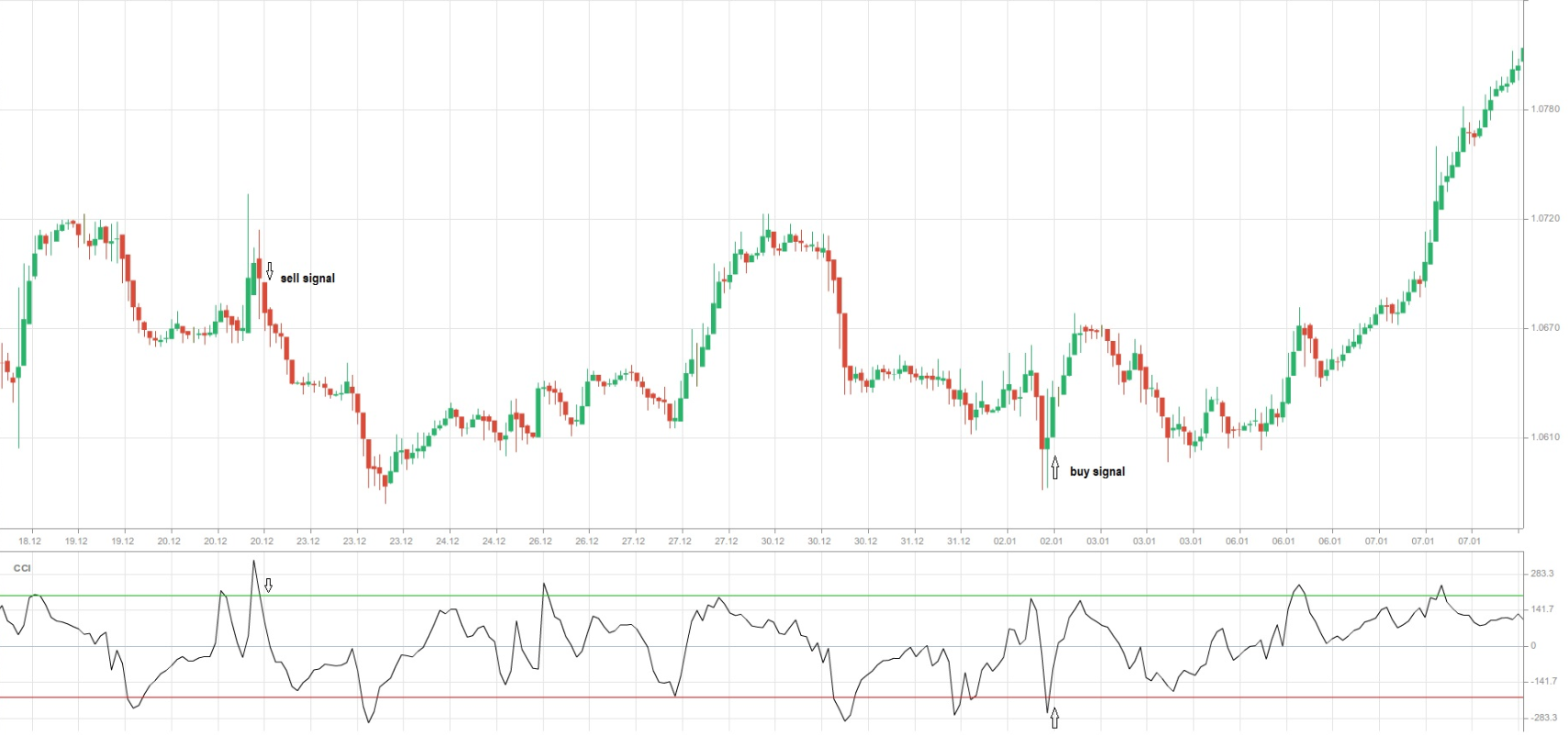 The Commodity Channel Index (CCI) was developed by Donald Lambert, who described it in the October 1980 issue of Commodities magazine. It can be used in any market. The CCI belongs to the group of so-called oscillators and measures the deviation of an instrument’s price from a moving average. The CCI is usually relatively high when prices exceed their average value significantly and, conversely, relatively low when prices remain well below their average value. Traders can use the CCI to identify overbought and oversold levels.