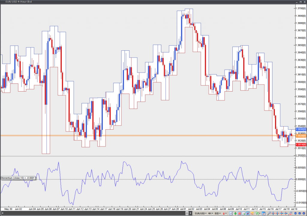 Second, looking for breaches of trend lines. By connecting the tops and bottoms of the Momentum indicator, a trader can draw trend lines. Momentum typically starts to shift before the price does; thus, it can be considered a leading indicator.