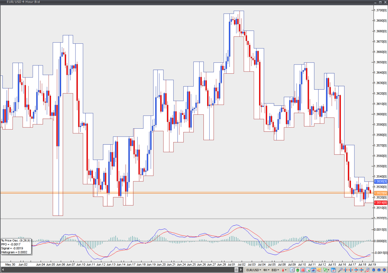 PPO = ((12-period EMA – 26-period EMA) / 26-period EMA) x 100
