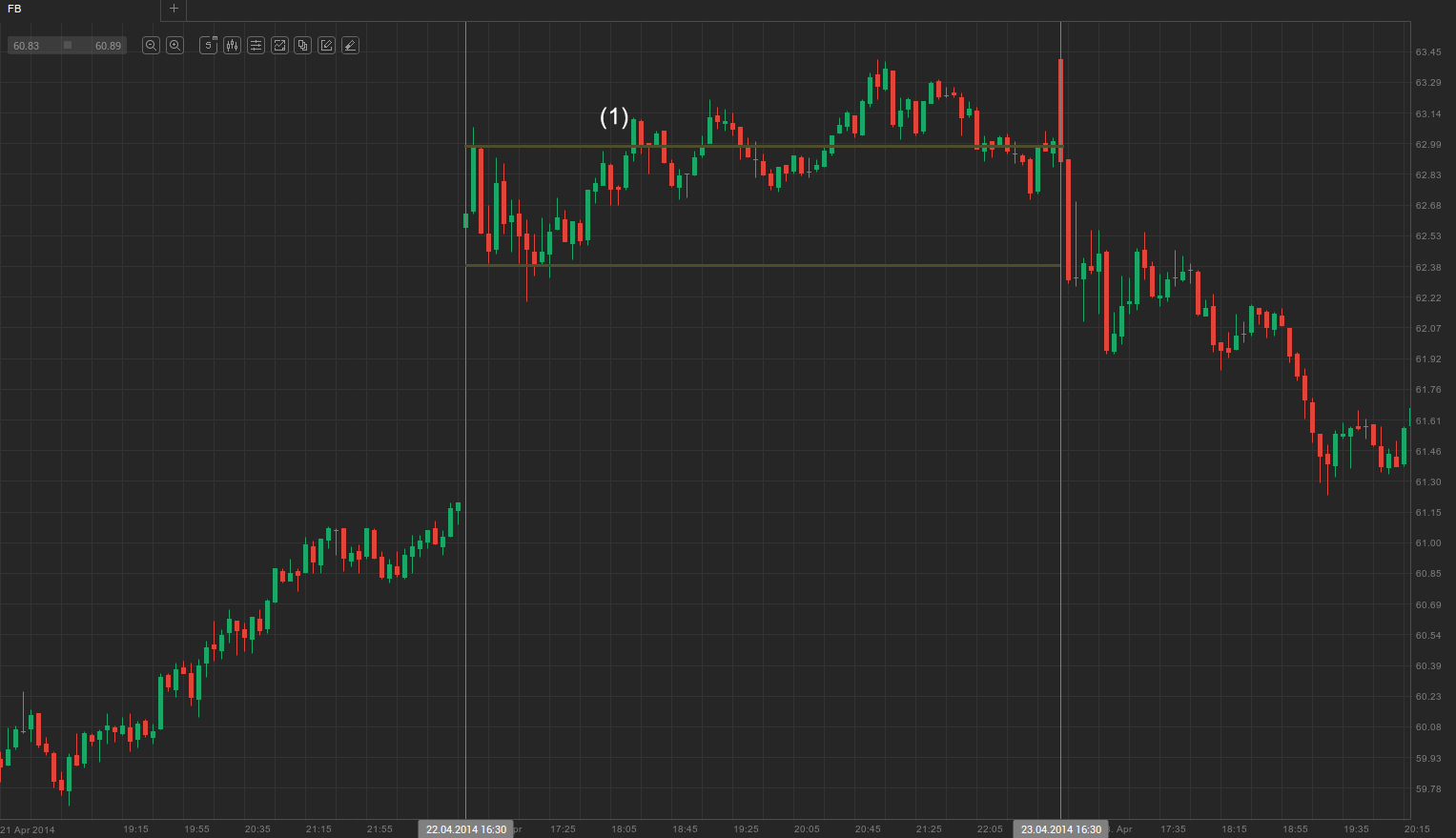As you can see in the example shown above, there was a breakout through the bottom of the day’s initial trading range to a new daily low, before which the range was about half of the average daily range. After the breakout, the price attempted to edge lower two more times, but since there wasn’t enough selling pressure, it rebounded to test the range’s top boundary. It broke out above the initial trading range at (1), further expanding the day’s range, before returning into the trading range. A second new daily high formed later, followed by a pullback into the trading range, and then a third daily high was reached before the price pulled back. During the final trading hour, the market found itself within the same initial trading range, only to settle several cents higher after a two-bar reversal.