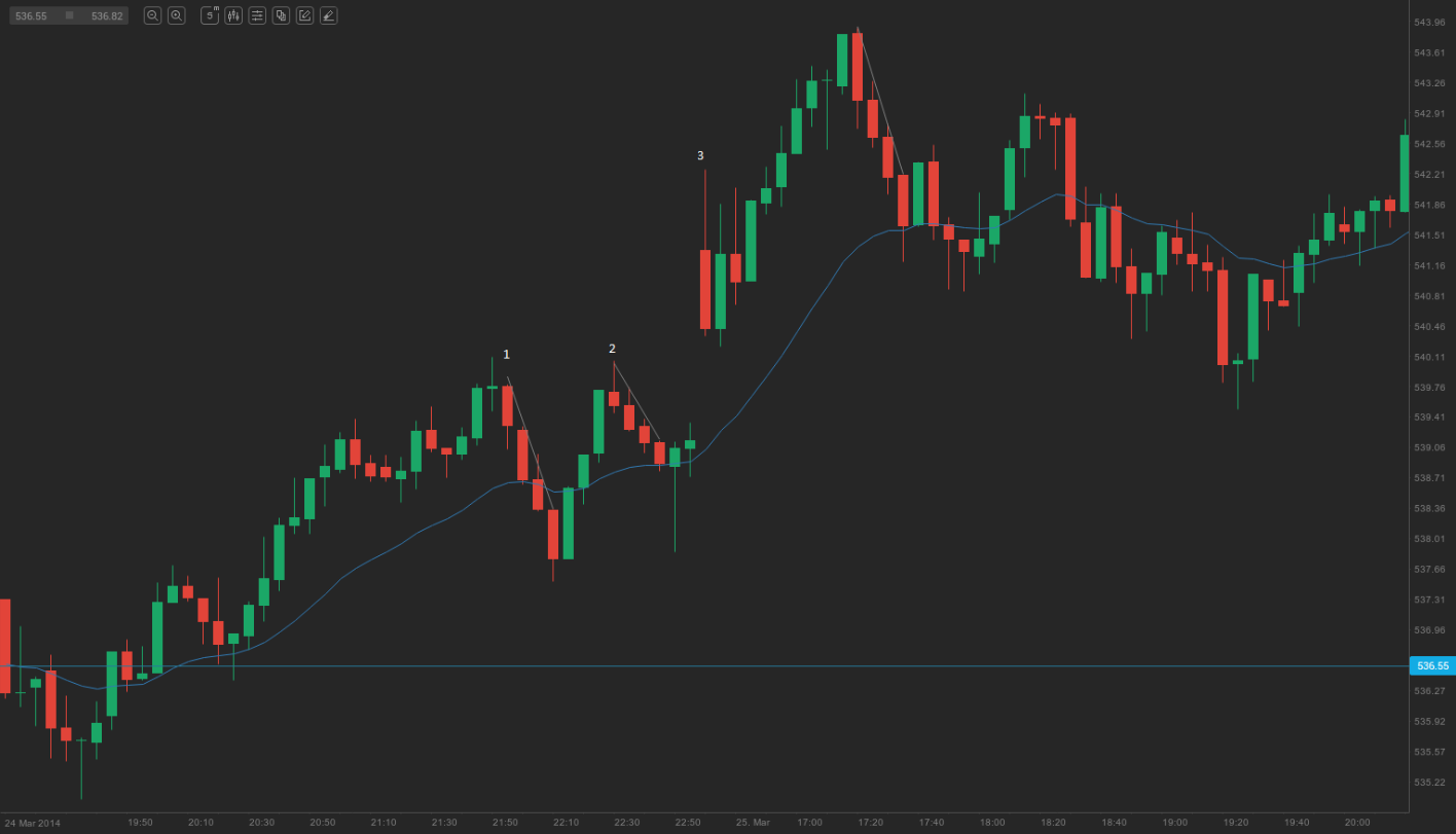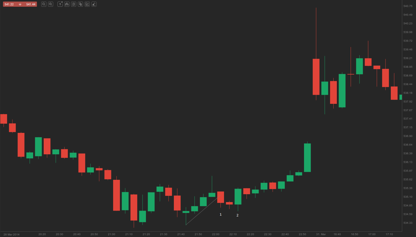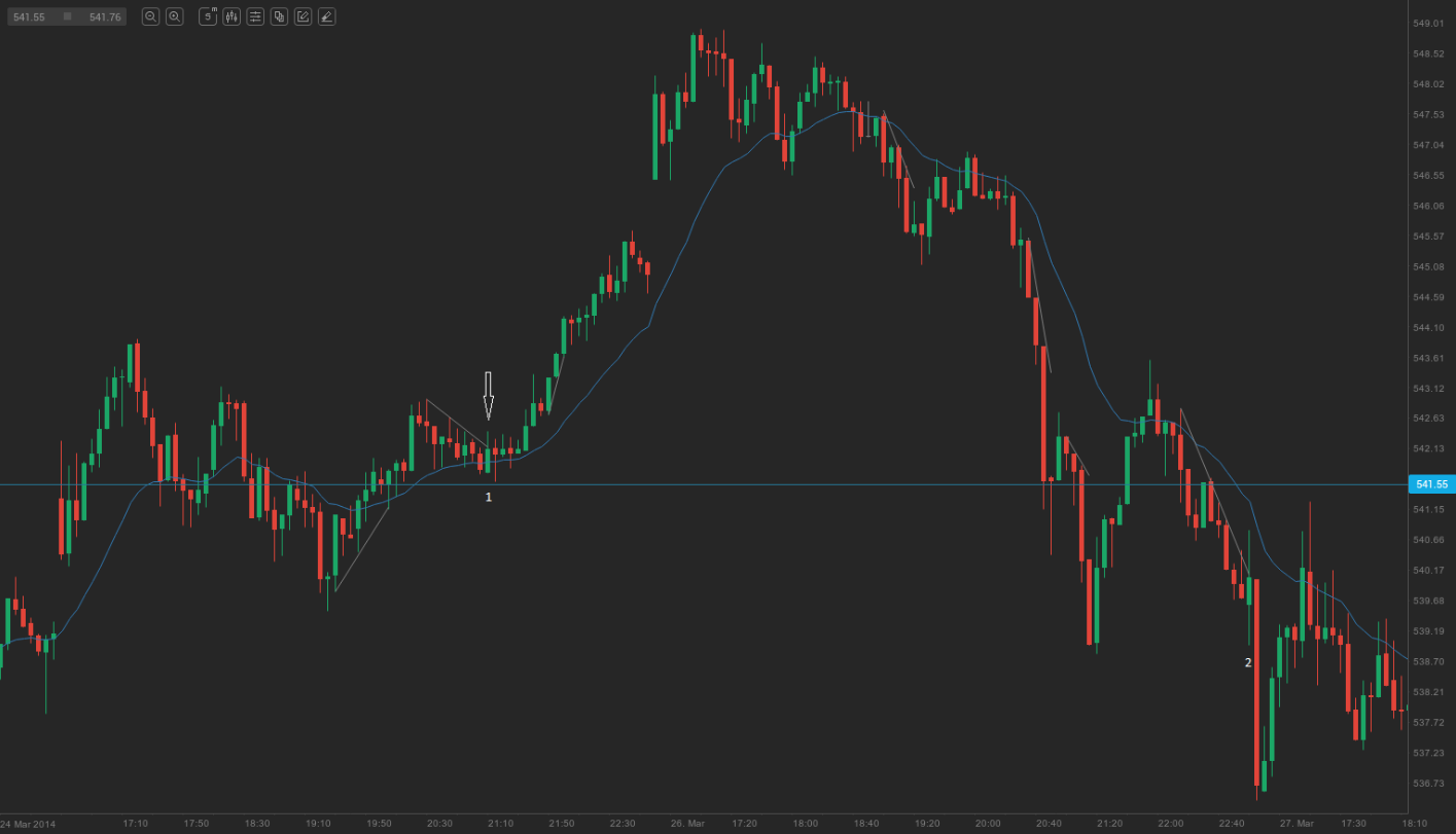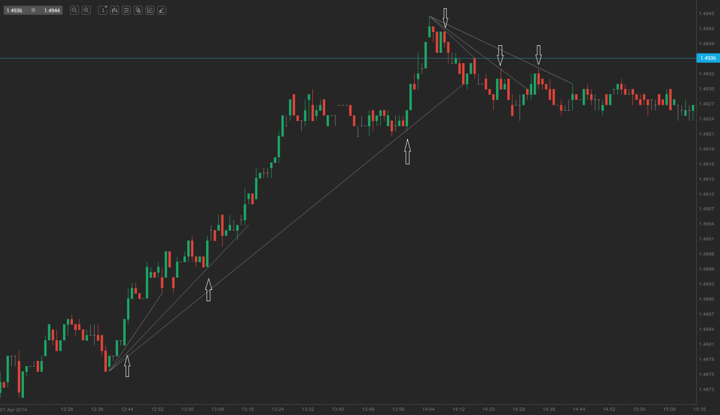 On the chart above we can see a few failed breakouts from micro trend lines, which could have been profitable trades.