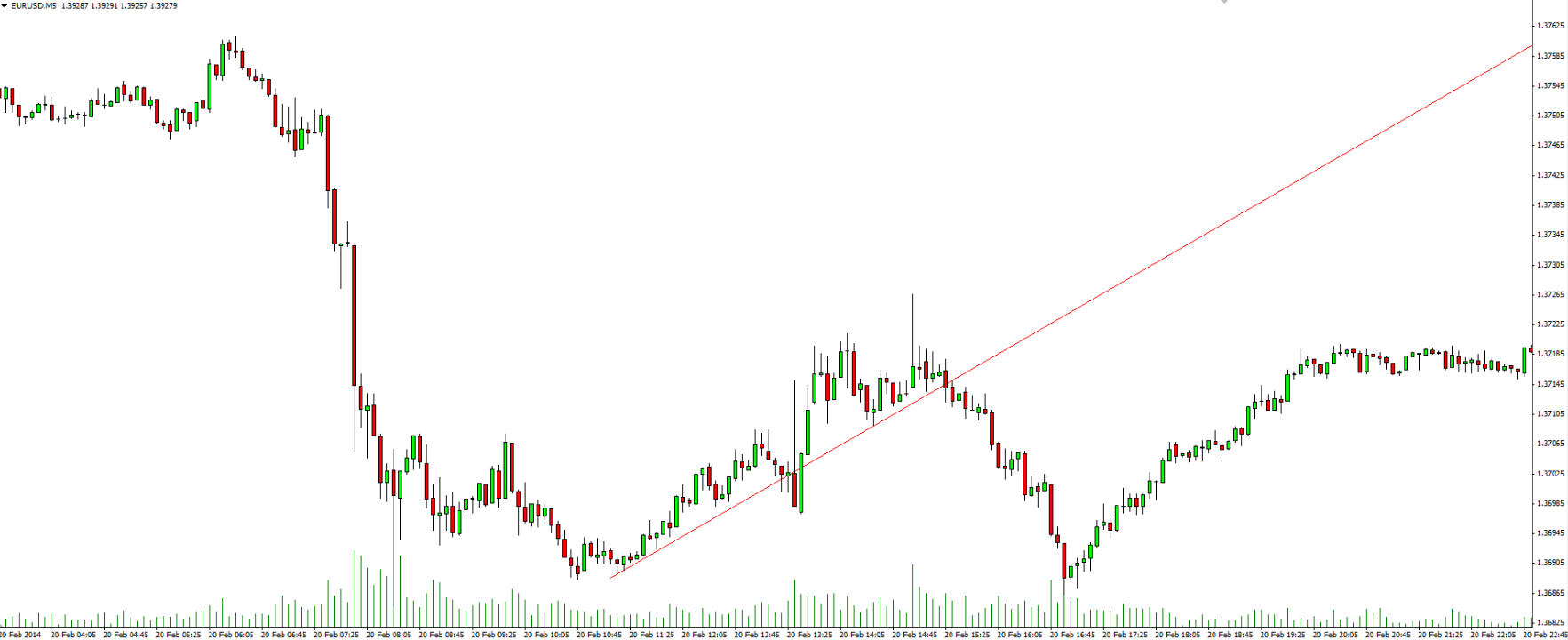 As we’ve mentioned in the previous article “Basics of Trends and Trend Lines”, trend lines are a means used to better visualise trending market movement. They are plotted beneath or above the price action, depending on the trend. Trend lines can be drawn using three or more consecutive price extremes (highs or lows), but also using linear regression or through eyeballing (the best-fit technique).